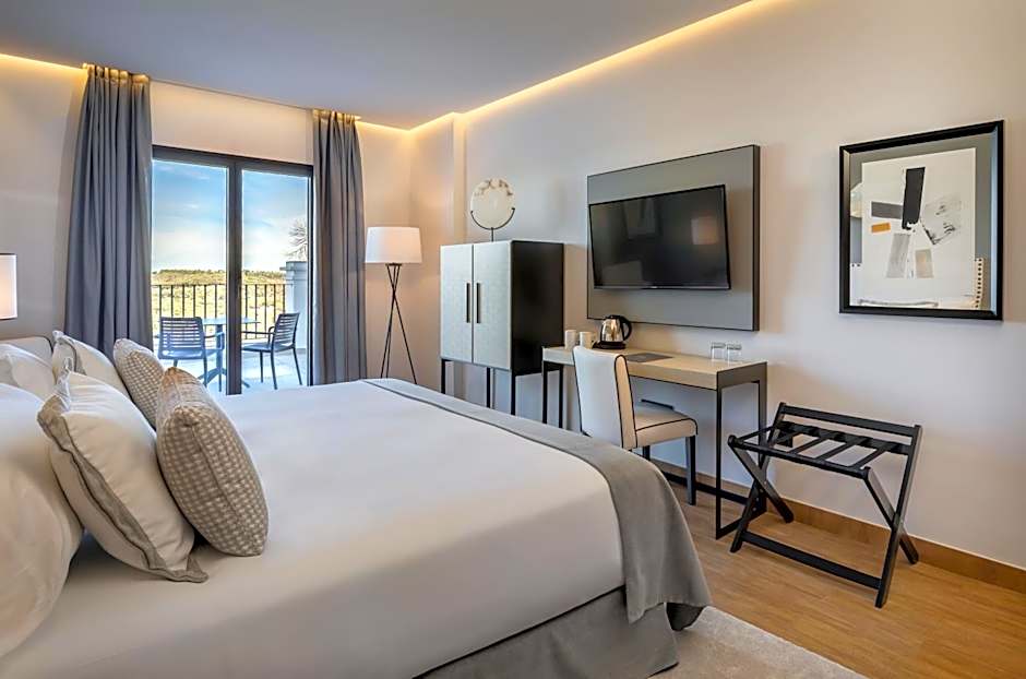 Offering spectacular views of the Sierra de Aracena and contemporary decor, this Deluxe double room features a TV, mini-bar, fully-equipped modern bathroom and a French balcony.